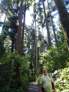 Om 07.00 uur opgestaan en via de Olympische fakkel richting de haven gelopen. Eerst even ontbeten bij Starbucks en vervolgens via Canada place langs het water naar Stanleypark gelopen. Dit is een 405 Ha groot stadspark aan de rand van de oceaan. Daar de totempalen en het Lighthouse bekeken en toen via Beaverlake terug richting de stad. Nu we in de haven zijn kunnen we het niet laten om aan boord te gaan van een radarboot voor een haventour. In de verte zien we een berg geel materiaal liggen wat zwavel blijkt te zijn. Na terugkomst via een gezellige winkelstraat de doorsteek gemaakt naar English beach waar we bij een stalletje een heerlijk broodje worst op de kop tikten. Dit op een bankje gegeten tijdens een praatje met een oude ex leŕaar en een koppel Nederlandse immigranten. Inmiddels is het 28 graden en lopen we over Schwarzbay langs een ‘Inuksuk’ ofwel Indiaans landmarkeringspunt om vervolgens over een Koreaanse straatmarkt weer naar het hotel te gaan. Na ons te hebben opgefrist naar de Top of Vancouver (een ronddraaiend restaurant p 167 meter hoog) gelopen om een super avond te hebben met heerlijk eten en een spectaculair uitzicht