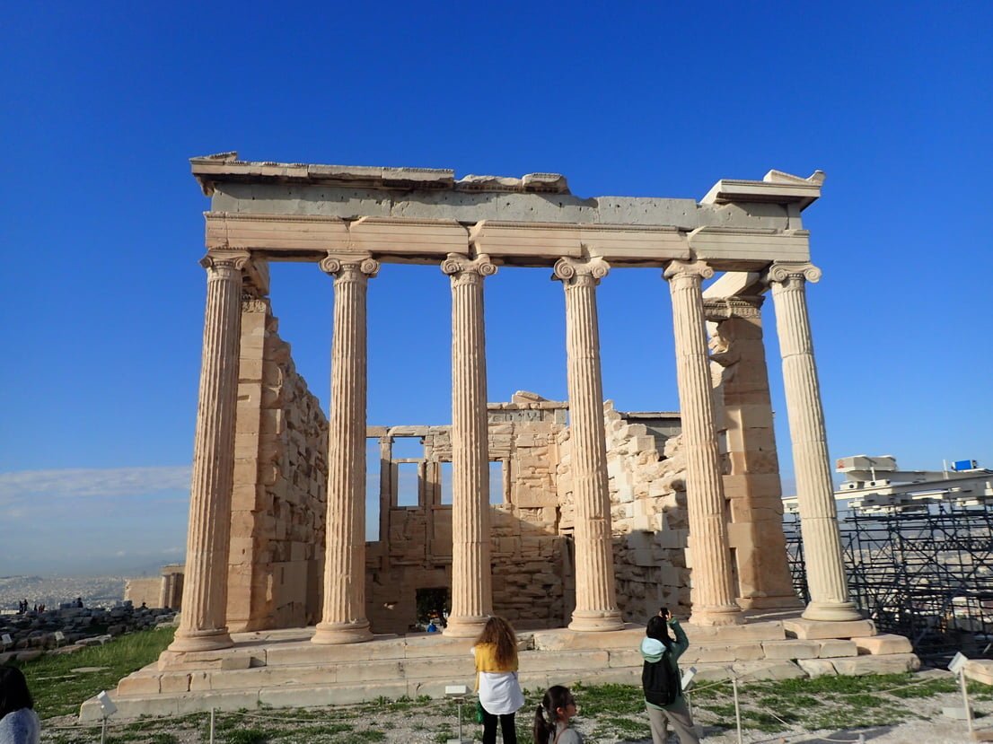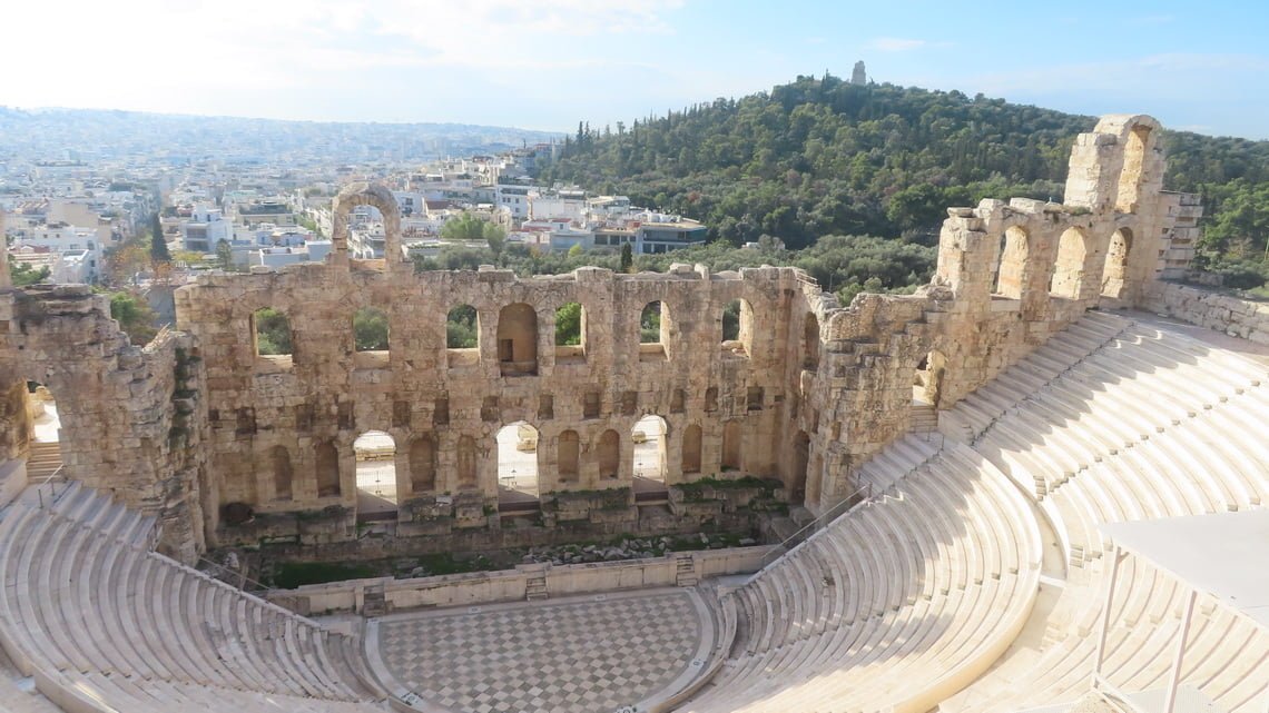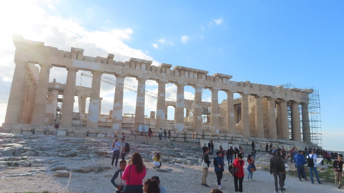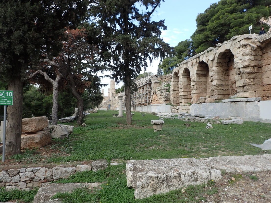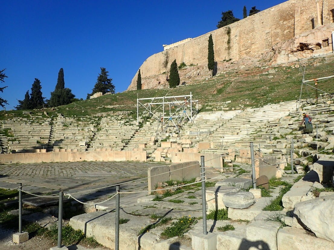 Nadat we ontbeten hebben controleer ik de weerapp en zie dat het rond 17.00 Uur wat zal gaan regenen. We gaan dan ook ‘s morgens al de Acropolis op om alle hierop staande tempels te bekijken. Zo zien we o.a. het Parthenon, de Propyleeën, de tempel van Nike en het Dionysustheater.