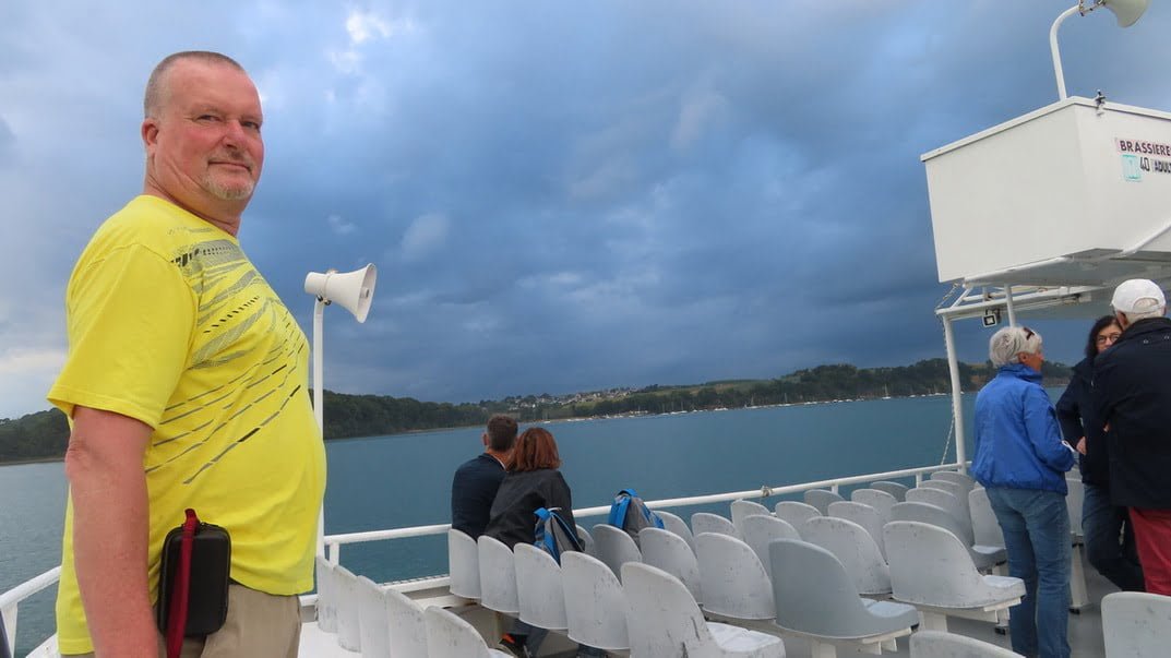 We zijn aan de voet van de vesting en zien daar een stand die boottochtjes verkoopt staan. We kijken even waar ze allemaal naar toe gaan en zien een interessante tocht naar Dinan. Dinan stond ook al op de planning om te bezoeken dus boeken we de tocht en schepen in. De tocht voert ongeveer 35 km door een zeearm en door 2 sluizen in de rivier de la Ranche. Het is een leuke vaart met van alles links en rechts van de boot. Dit wordt uitgelegd maar is voor ons onverstaanbaar, mede door het geluid van de boot en de veel te snel enkel Frans pratende kapitein.