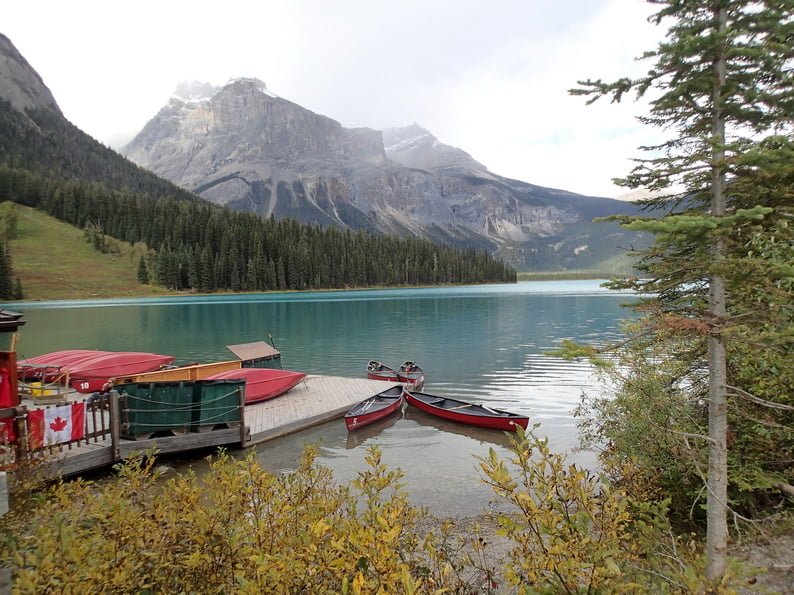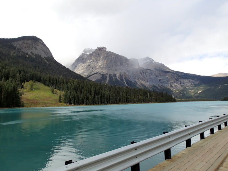 Omdat het nog te vroeg is om bij het hotel, the Deer Lodge, in Lake Louise in te checken rijden we voor nog een mooie excursie via Yoho’s Natural bridge naar Emerald Lake. Emerald Lake is een natuurlijk meer in de Rocky Mountains. Het meer is onderdeel van het Yoho National Park en dankt zijn naam vooral aan de prachtige blauwe kleur wat ontstaat door smeltwater.
