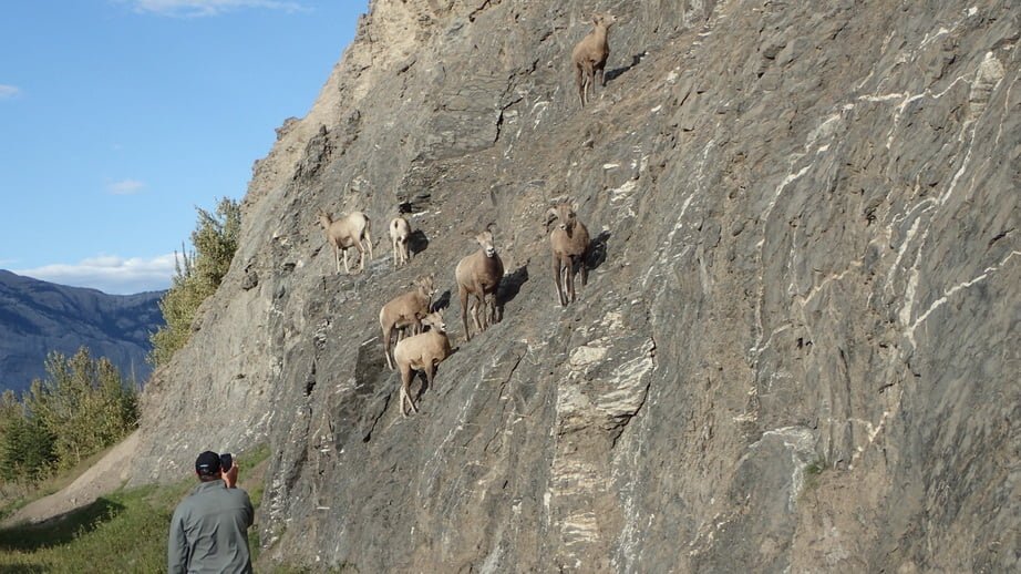 We rijden naar Maligne Lake voor een onvergetelijke boottocht. Maligne Lake is een meer in Jasper National Park, Alberta, Canada. Het meer staat bekend om de kleur van het azuurblauwe water, de omliggende toppen (Leah, Samson Peaks en Mount Paul in het oosten en Mount Charlton, Mount Unwin, Mary Vaux en Llysfran Peak in het westen en zuiden), de drie gletsjers (Charlton-Unwin, Maligne en Coronet) die zichtbaar zijn vanaf het meer en Spirit Island. De boottocht gaat in zo’n 1,5 uur op en neer naar Spirit Island. De uitzichten waren adembenemend en onze gids, Jordan, vertelde vele wetenswaardigheden over de omgeving en de Lake. Op de terugweg zijn we ook nog bij Medicine Lake gestopt waar we nog een Moose en een paar groepen dikhoornschapen zien.