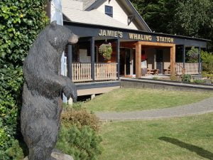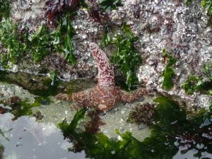 Vanmorgen eerst een wandeling op het strand gemaakt. Het was eb en zodoende mooie foto’s van anemonen en zeesterren gemaakt. Om half 3 gaan we naar Jamie’s voor de walvistocht. We gaan deze tocht doen in een Zodiac. De gids raadt ons aan om achteraan te gaan zitten in verband met het op spatten van zeewater en het feit dat je minder deining hebt. Dit is voor het filmen en fotograferen veel rustiger. Tijdens de tocht zien we 5 grijze walvissen, een zeeotter, zeehonden en zeeleeuwen. Een 10 voor Jamies, goed ingepakt en een prettige gids/stuurman aan boord.