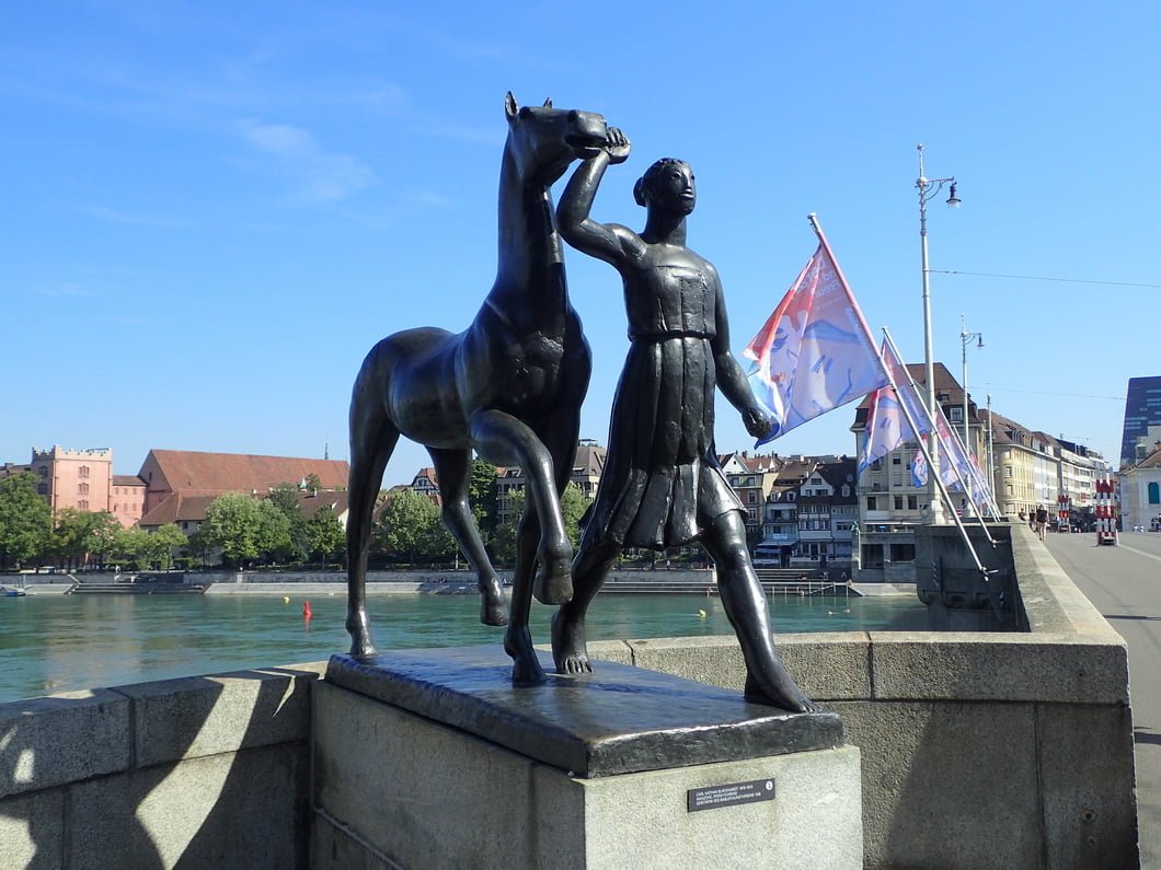 Vandaag gaan we Basel CH bezoeken. We vertrekken uit het hotel en lopen via de Dreiländerbrücke, De Drielandenbrug (Duits: Dreiländerbrücke, Frans: La passerelle des Trois Pays) is een boogbrug voor fietsers en voetgangers over de Rijn, gelegen bij het Duitse Weil am Rhein aan de ene oever, en het Franse Huningue aan de andere oever. Verder ligt de brug ongeveer 200 meter van de grens met Zwitserland – het derde land. De Drielandenbrug is de langste boogbrug met één enkele boog ter wereld in de categorie voetgangers- en fietsersbrug. De brug is ontworpen door Dietmar Feichtinger. De 346 meter lange brug heeft een overspanning van 238 meter. Voor de bouw was 1012 ton staal, 1798 kubieke meter beton en 805 meter kabel nodig. De brug werd nabij Huningue in elkaar gezet en op 26 november 2006 naar haar huidige plek gebracht. Op 30 maart 2007 vond de opening plaats. Over deze fietsbrug lopen de Europese langeafstandsfietsroutes EuroVelo 6 (Atlantische Kunst – Zwarte Zee) en 15 (Rijnroute), aan de Franse kant naar de Zwitserse grens.