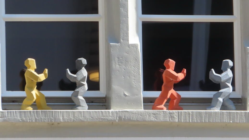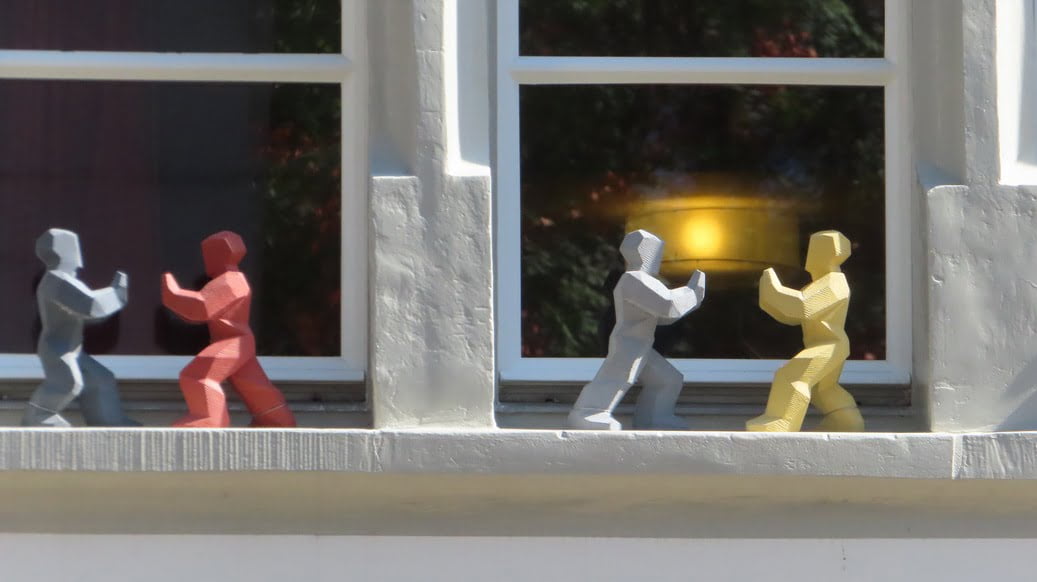 Na vele kilometers lopen in de bloedhitte (34 gr) besluiten we langs de Rijn een terrasje te zoeken om wat te drinken en eten. Hier krijgen we ook nog een openlucht balletvoorstelling van een bejaarde voorgeschoteld.