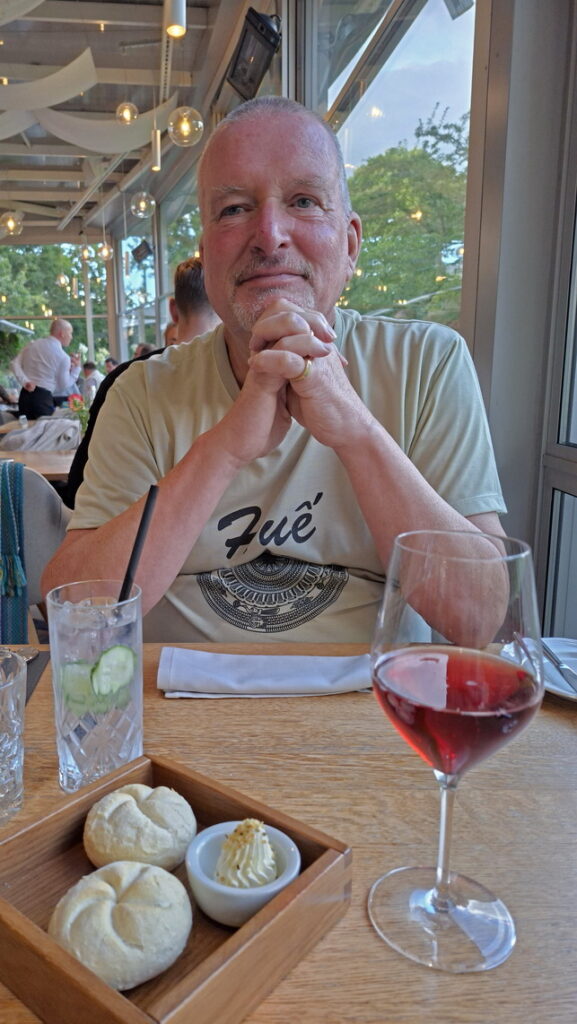 Tijd voor een borrel. We duiken een terras op want het is genoeg voor vandaag. ’s avonds eten we lekker gebakken eendenlever en tonijn in een mooie restaurant langs een park. We kijken op de tuin uit met zicht op een mooie fontein en de Opera.