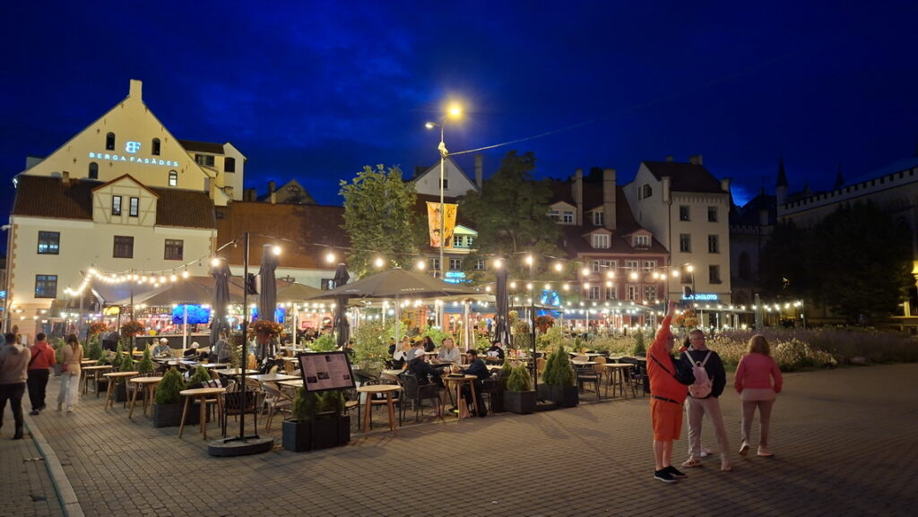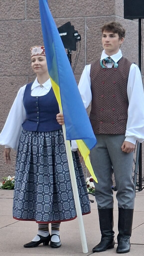 Na het diner lopen we nog even naar het Vrijheidsmonument want er is een herdenking aan de gang met zang en een vlaggenparade. In klederdracht geklede koppels dragen de vlaggen van Estland, Litouwen, Letland en de Oekraïne. Na een toespraak wordt er een laan van kaarsjes ontstoken door de aanwezige bezoekers.