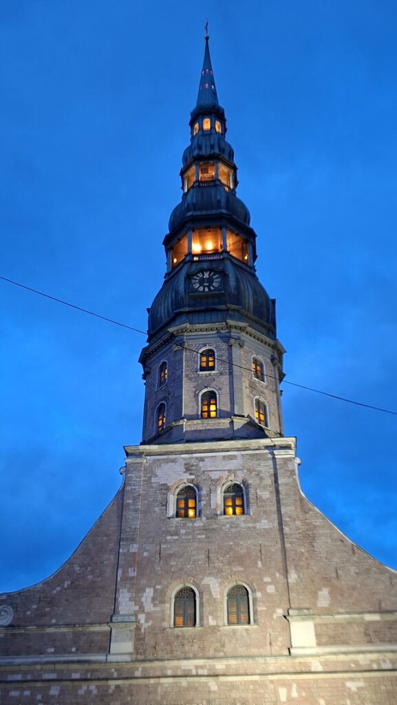 Na het ontbijt slenteren door het oude centrum en bekijken de venters die aan hun nieuwe dag beginnen. Het is droog en wat blauwe lucht en dus besluiten we de toren van de St. Petrikerk op de gaan om zo een mooi uitzicht van boven te hebben.