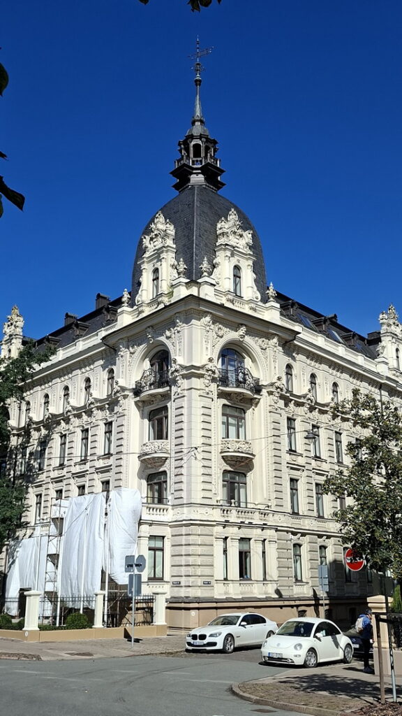 De dag geeft veel beter weer dan vooraf voorspeld. We lopen na het ontbijt door het station en verder naar de Art Nouveau wijk. Geweldige gevels, zouden die de oorlog overleefd hebben of zijn ze heel mooi gerestaureerd. In elk geval waardig Unesco erfgoed.