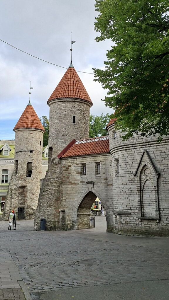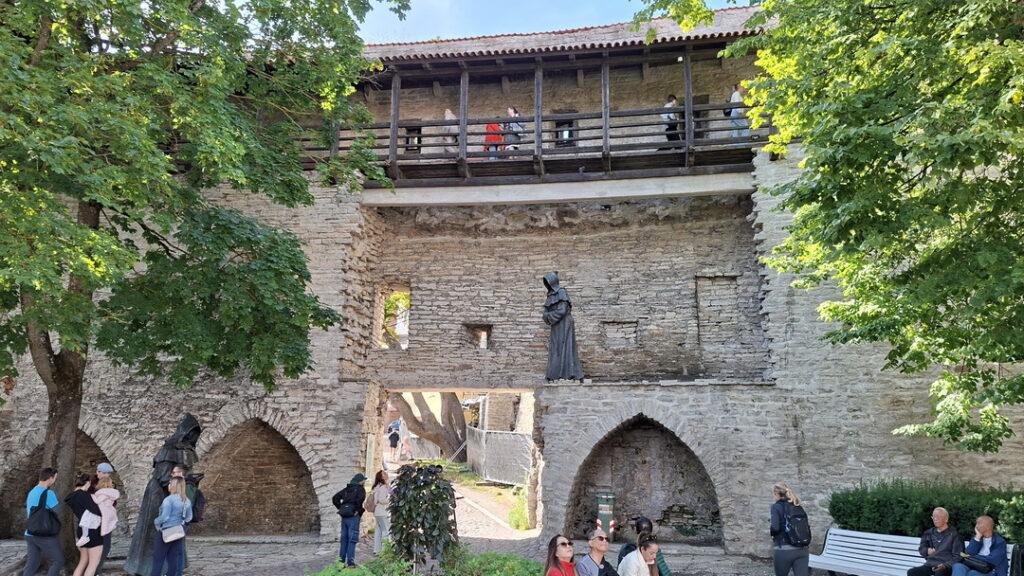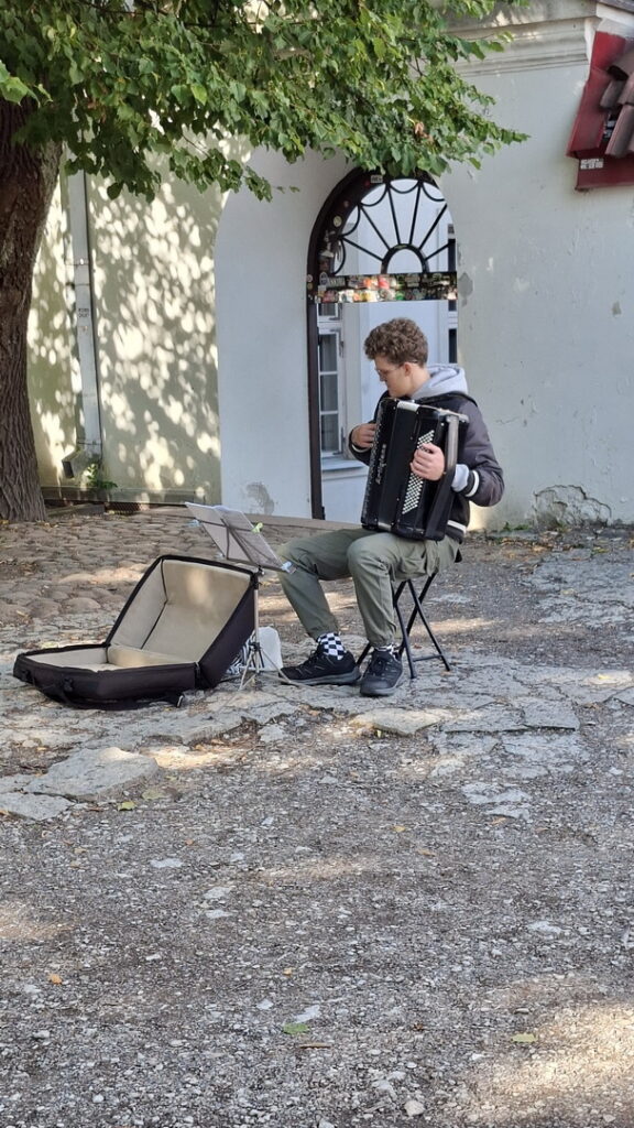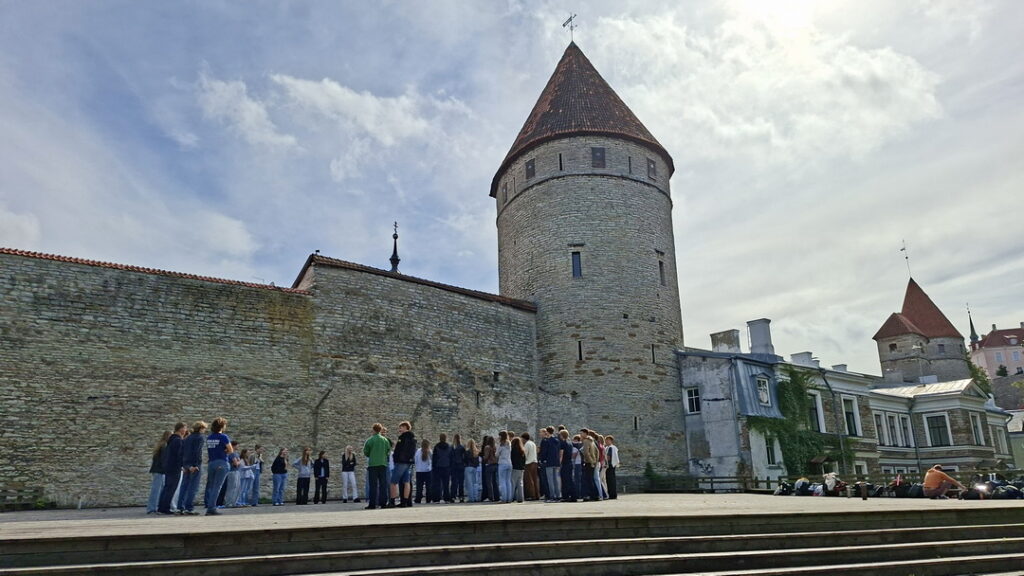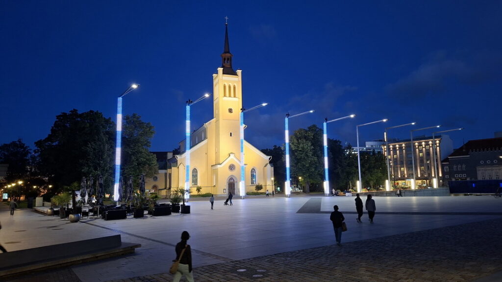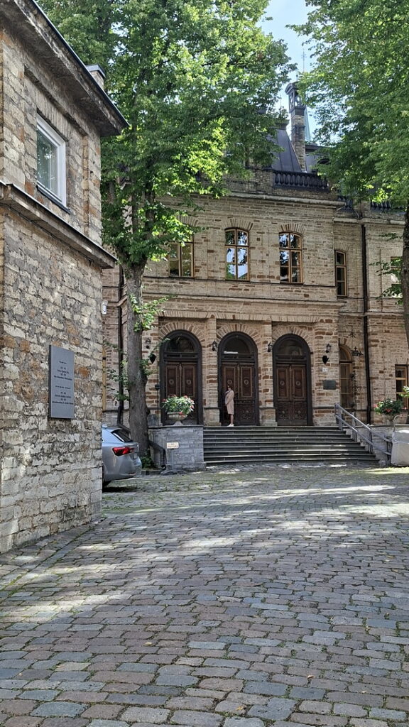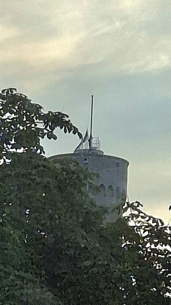 Even voor 7 uur zie ik op de Pikk Hermann toren (de parlementstoren) iemand lopen. Hij gaat de Estse vlag hijsen wat stipt om 7 uur onder begeleiding van het volkslied geschiedde.