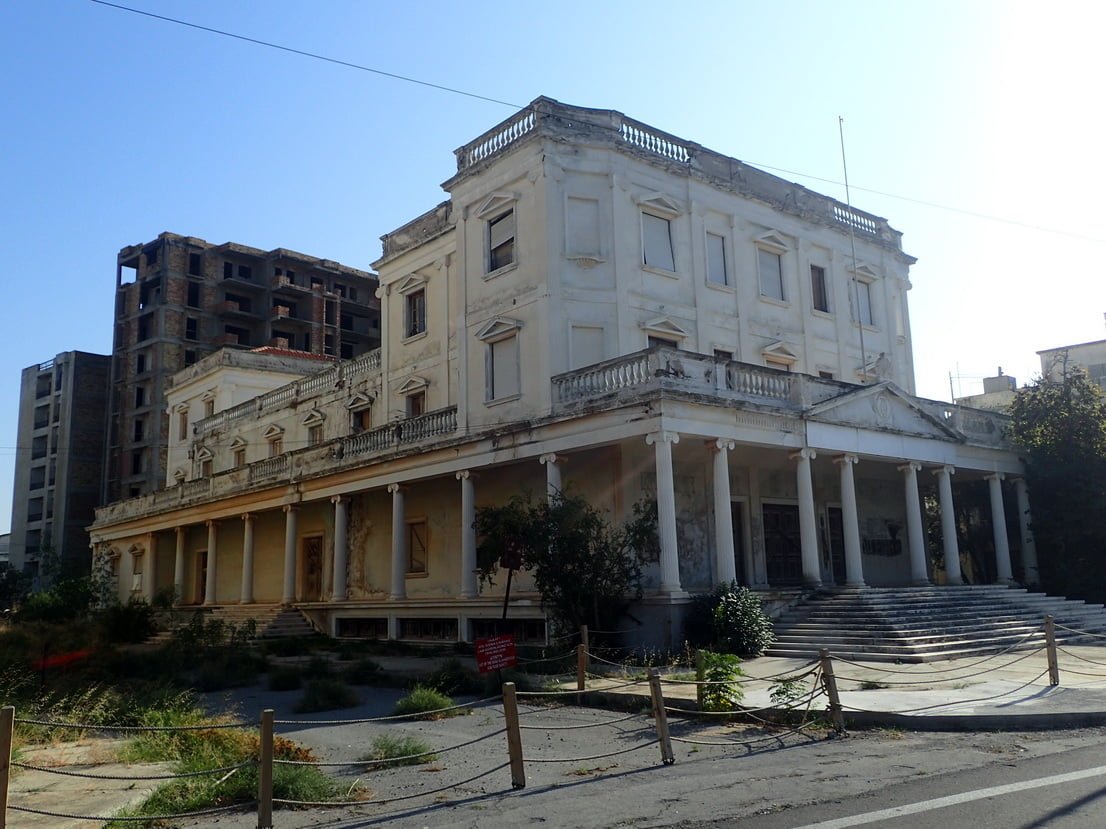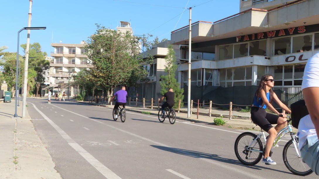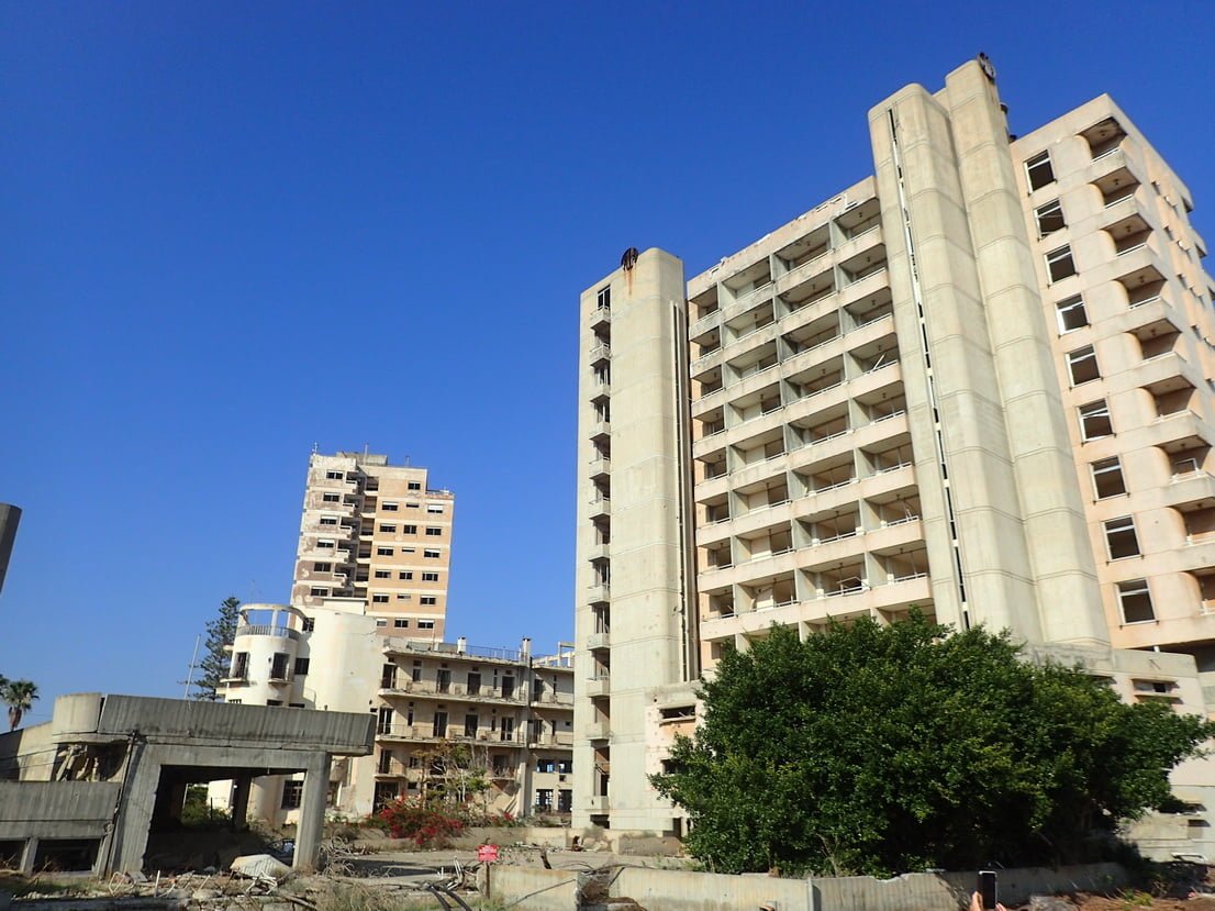 De wijk Varosha (gelegen in de stad Famagusta) was zo’n 40 jaar geleden een drukke badplaats door de drie perfecte factoren: wit zandstrand, turquoise zee en 300 dagen in het jaar zon. Het had een historisch centrum met culturele plekken en een groot uitgaansleven, waardoor hier ook filmsterren als Brigitte Bardot en Paul Newman verbleven. Maar op dit moment is de wijk en het strand onbewoond, vervallen en griezelig. Om de wijk heen staat een groot hek met prikkeldraad en bordjes met daarop ‘verboden zone, ‘geen foto/video’ en ‘niemandsland’. Niet voor niets heeft Varosha ook de bijnaam “spookstad”. Het Turkse leger bewaakt nog steeds deze spookstad, en laat sinds kort toeristen naar binnen. De hoteleigenaren zien van een afstand hun eigendommen steeds meer vervallen. De gebouwen staan op instorten. Maar niemand die erbij mag.