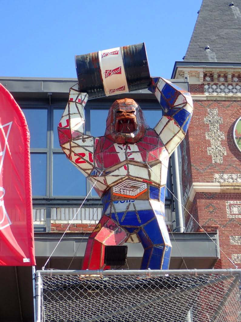Inmiddels is het al behoorlijk warm geworden en besluiten weer een flinke wandeling te maken. We lopen langs de havens en de oude loodsen, waarvan er inmiddels een groot aantal zijn omgebouwd tot café’s en restaurants. Aan het einde van de kade lopen we richting de stad terug lunchen te midden van werkend Rouen op een terras geheel in de Franse tijdlijn.