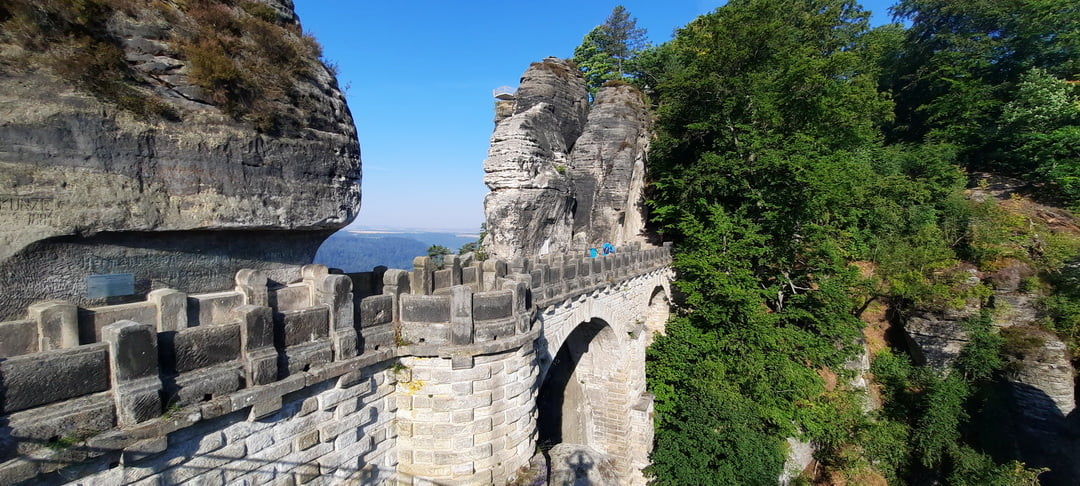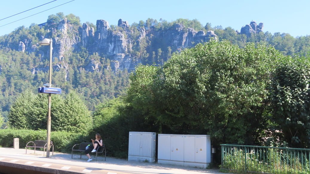 In de ochtend pakken we de trein naar Rathen om naar een van de bezienswaardigheden te gaan die we graag wilden bekijken, de Bastei Bruecke.