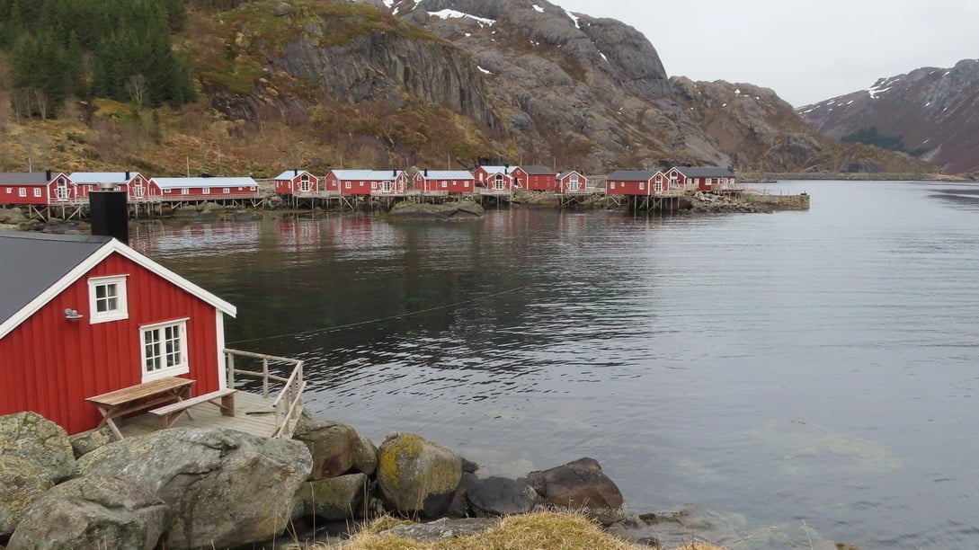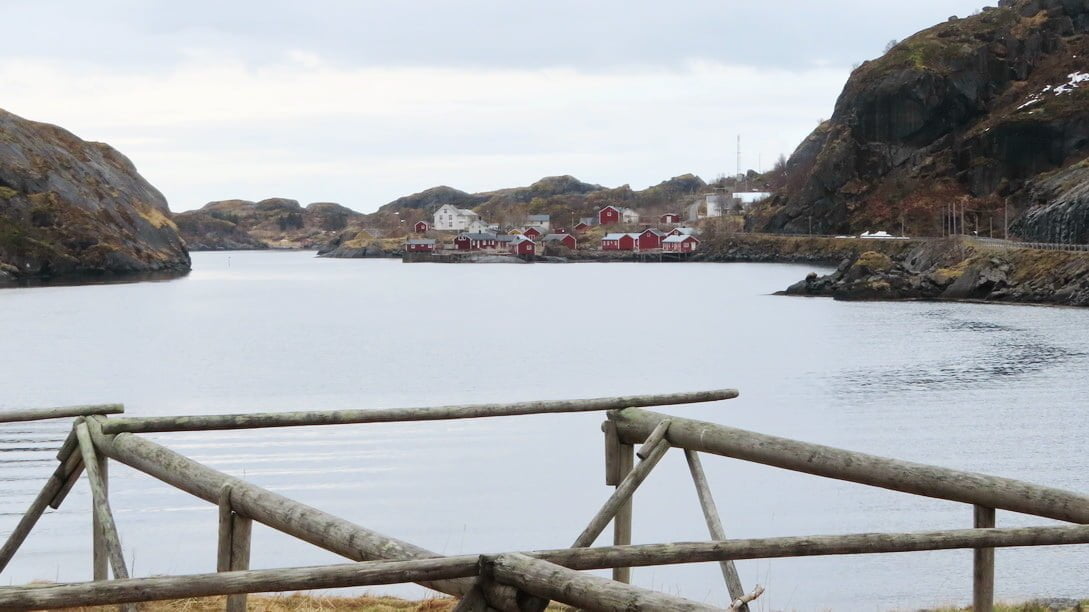 We rijden door en volgen het kaartje wat we van Kristoffer hadden gekregen met zijn ‘hidden spots’. We slaan een zijweg in om het vissersdorpje Nusfjord te bezoeken. Dit dorpje is erg leuk en ligt heel idyllisch in een baai. Buiten de nieuw gebouwde Hyttes die nu als vakantieappartementen worden verhuurd is het nog traditioneel en op het cafe-restaurant en de bakker na geheel gewijd aan de visserij.