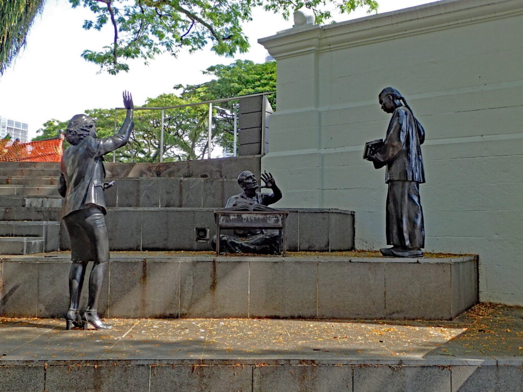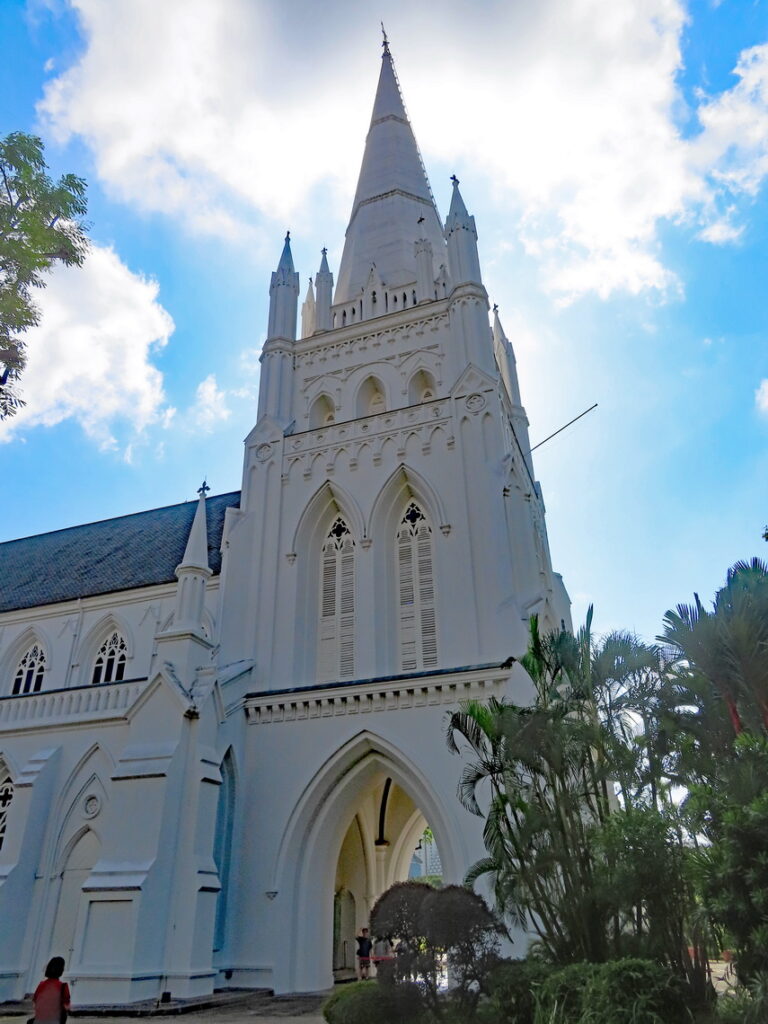 We wandelen langs de oude pak- en handelshuizen waar de goederen werden verscheept. We bezoeken de witte kathedraal en de buitenzijde van het historische Raffles hotel. We lopen daarna weer terug naar de Marinabay echter nu langs de andere kant, op zich geen spectaculaire route maar wel met een aantal leuke doorkijkjes.