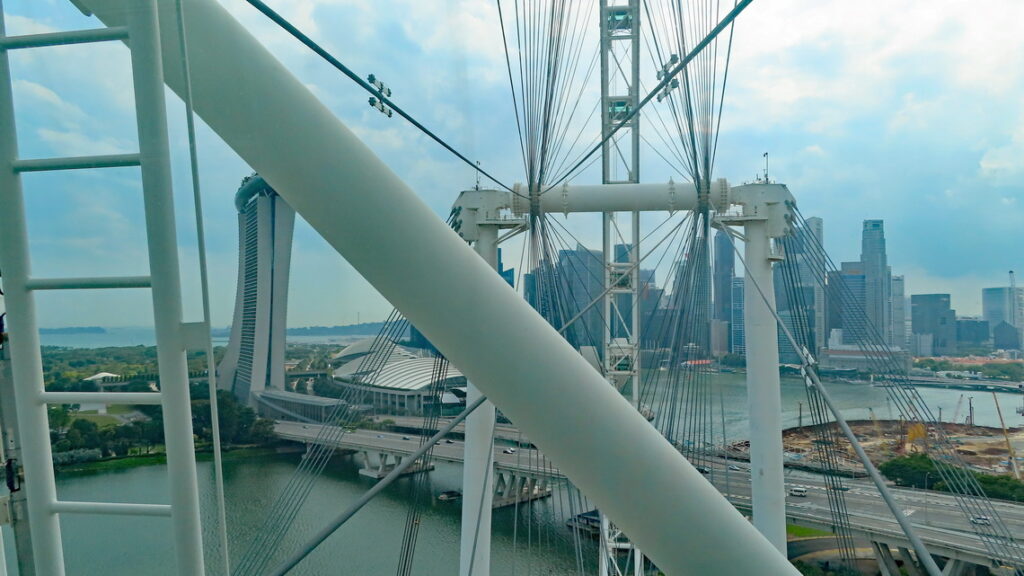 We komen bij de 150 meter hoge Singapore Flyer en besluiten een rondje mee te gaan. Een ronde duurt een goed half uur, zo langzaam draait de Flyer rond. Zeker een aanrader en ook leuk dat je een stuk van het Formule 1 circuit kan zien. Op de grond valt dit nauwelijks op.