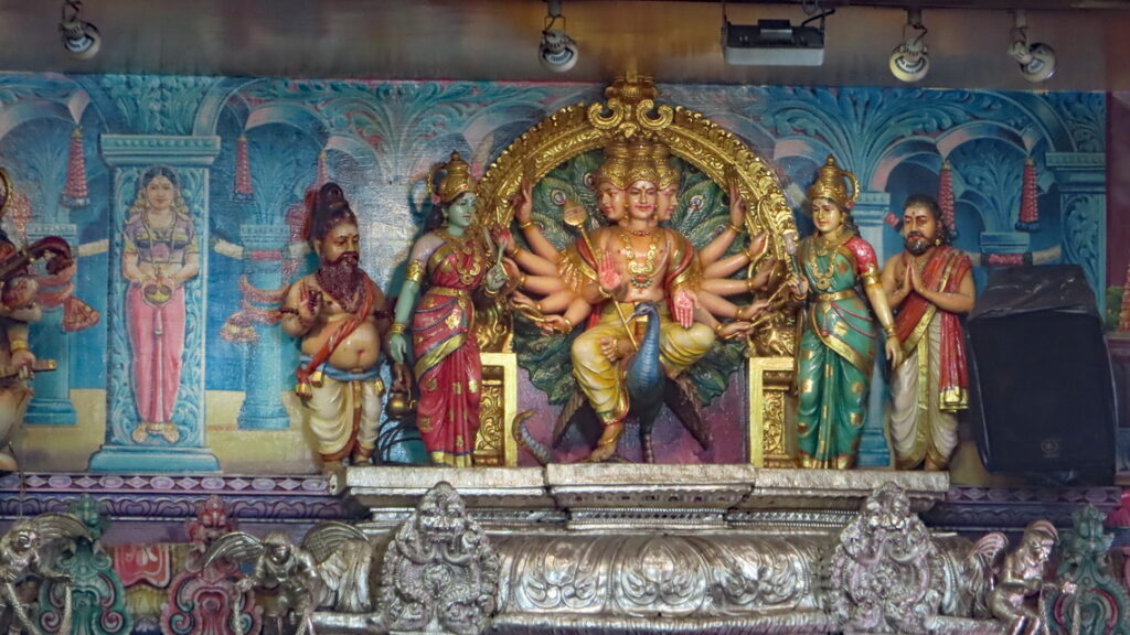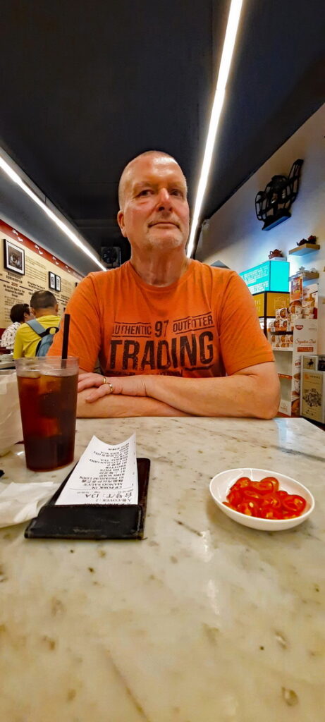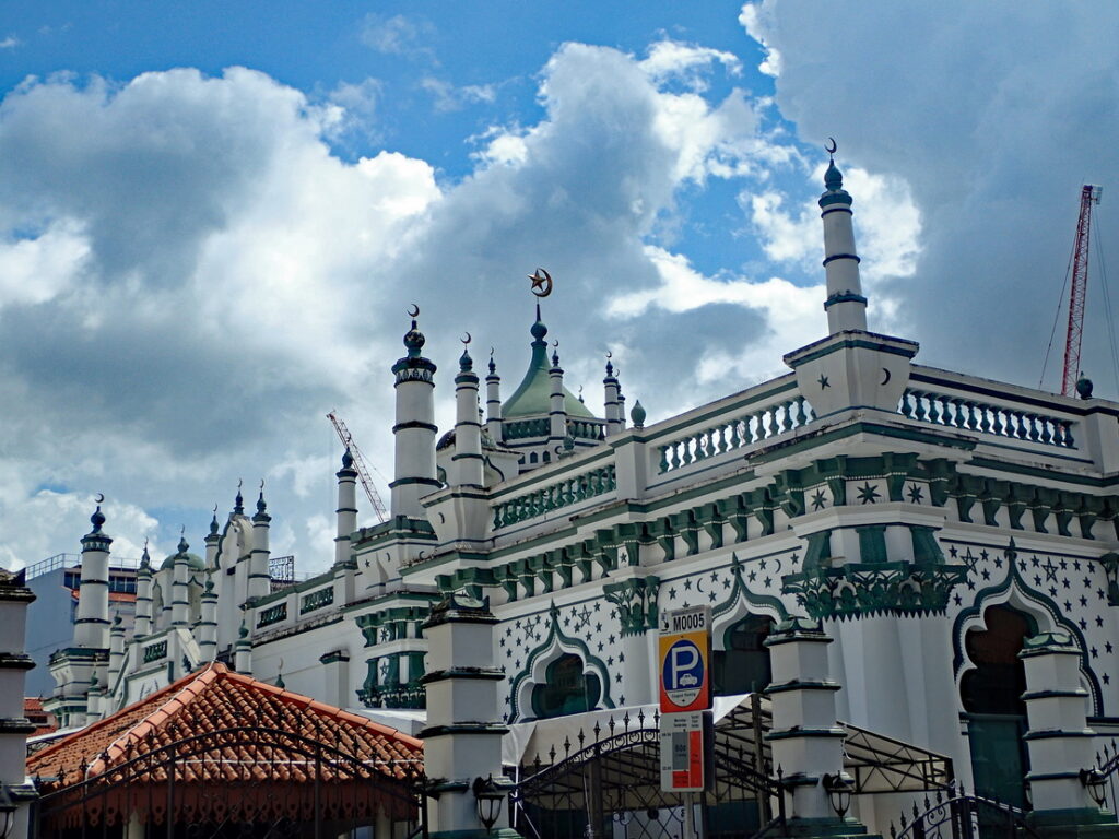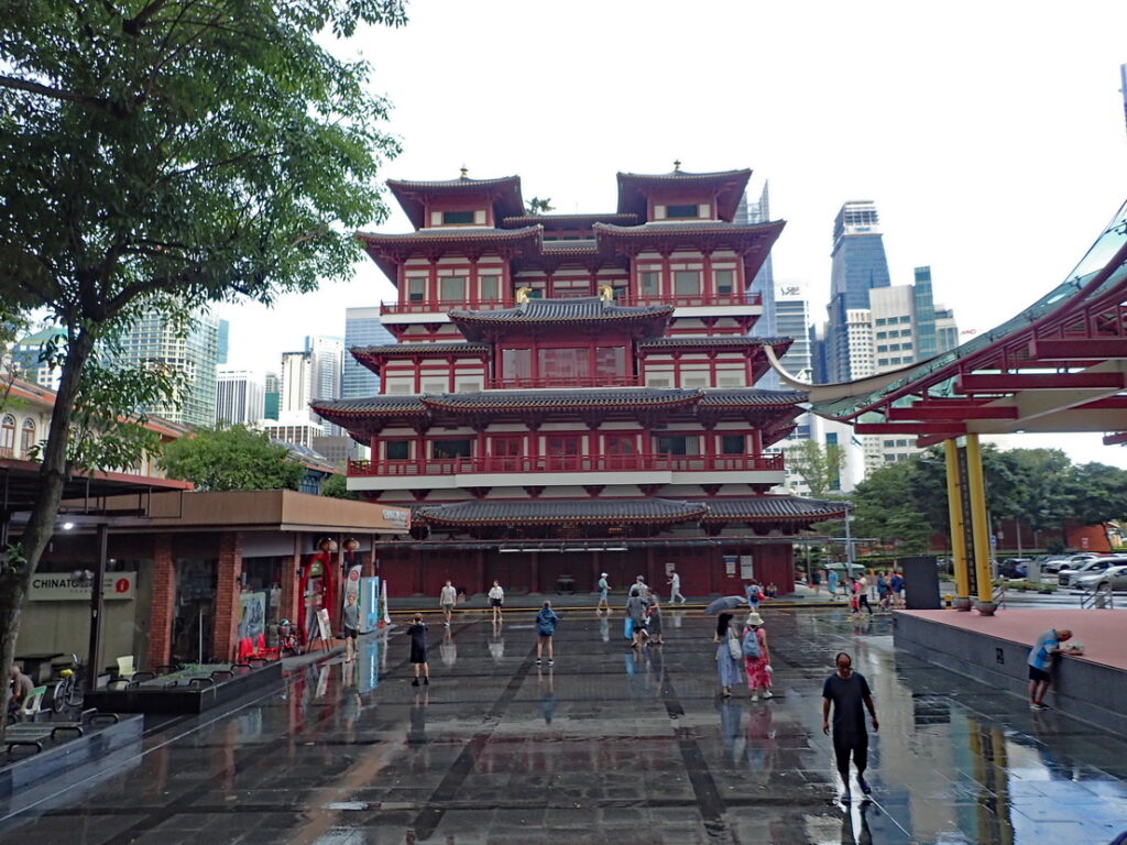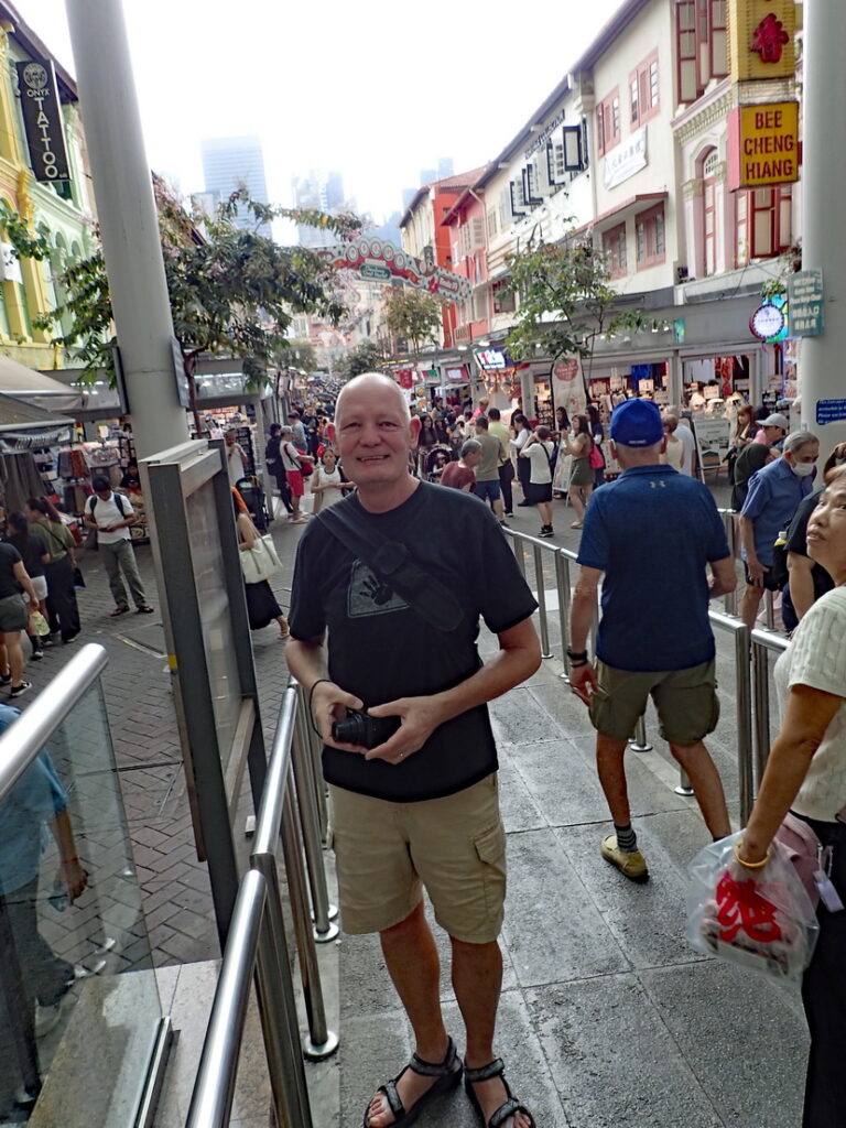 Wisselen wat spullen om en lopen dan de wijk Little India in om eens goed rond te kijken. We worden uitgenodigd om de Moskee te bezoeken wat we graag doen. Nadat we de moskee rond zijn gegaan blijken de weergoden een verrassing in petto te hebben, een flinke stortbui. We maken van dit ongemak een deugd en strijken neer bij een foodcourt. Drie glazen ice-tea en twee overheerlijke stukken Martabak later is het wat opgeklaard en lopen we nog een stuk door de wijk. Hierna even naar het hotel en dan door naar Chinatown. We bekijken een stukje en dan volgt weer een wolkbreuk maar ook hier laten we ons niet kennen en samen met velen bevolken we een terras om op betere tijden te wachten. Na twee drankjes wordt het droog en we bekijken de rest van Chinatown. Onderweg hebben we nog een geanimeerd gesprek met twee Chinese jongens waarbij het verschil in cultuur en vrijheid wel heel duidelijk wordt. Zij vertelden dat zo’n gesprek in China nooit zou worden toegestaan en dat je waarschijnlijk in de gevangenis zou belanden. Ze waren zelfs bang om, midden op straat in Singapore, te worden afgeluisterd door de Chinese overheid. Nadat we Chinatown verlaten hebben gaan we eten bij het restaurant waar we de eerste dag hebben geluncht. Terug op de hotelkamer nog even online inchecken voor de vlucht naar Hanoi van morgen en dan lekker onderzeil.