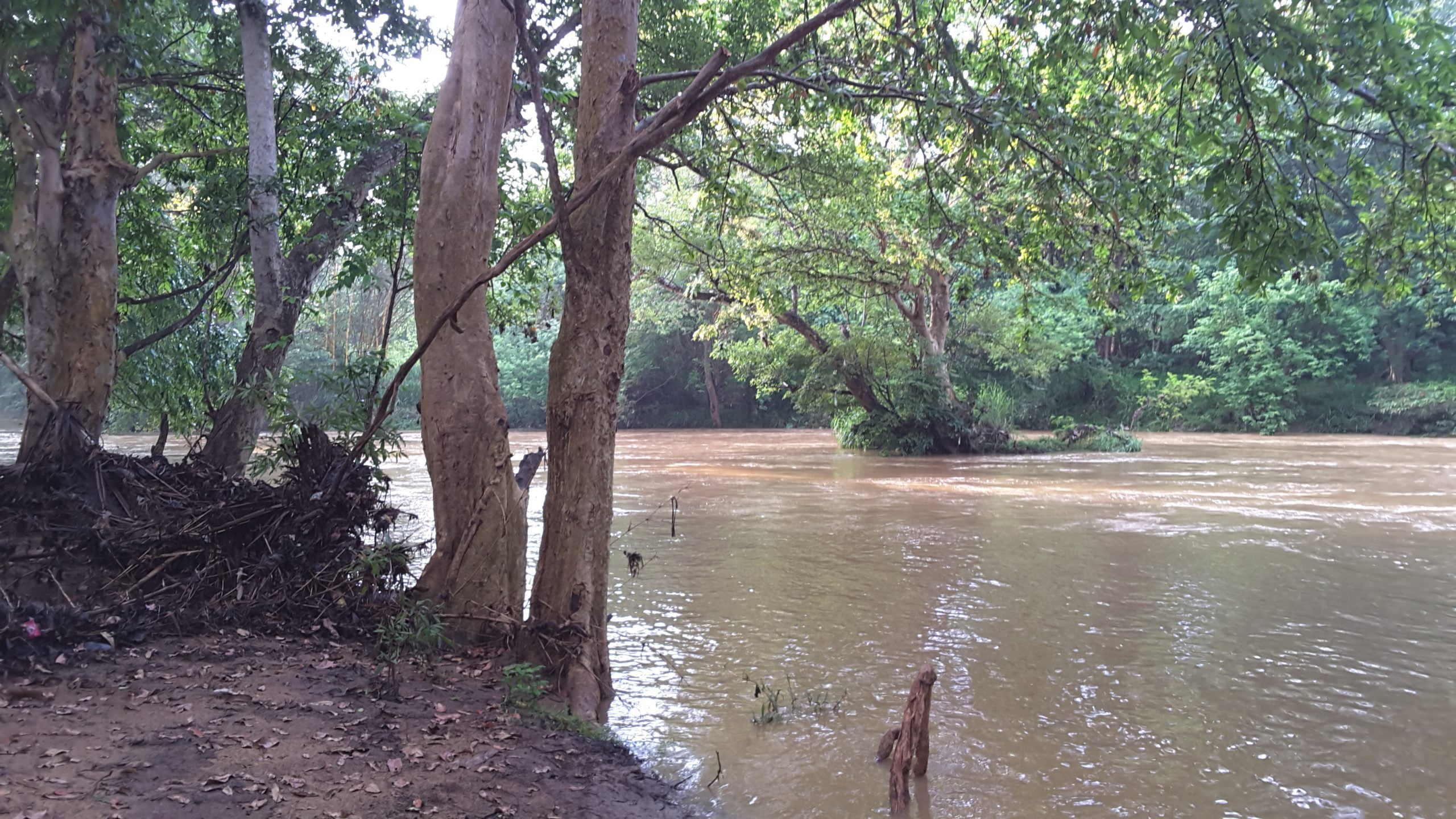 Dit maakte we nog niet eerder mee, we staan op met regen maar het valt onder het gebladerte amper op.