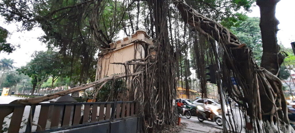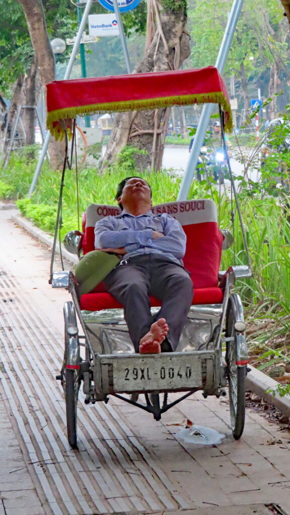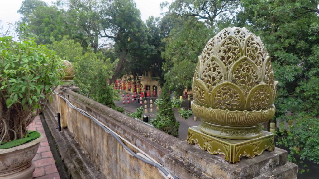 Op de kamer hadden we gezien dat we ook nog de éénzuilige pagode hadden gemist dus we lopen na de kathedraal weer terug naar de plek waar we ’s morgens al waren. Maar wat we ook probeerde alle wegen er naar toe waren door militairen afgesloten.
