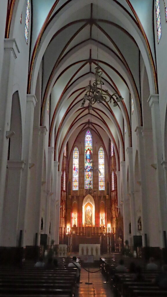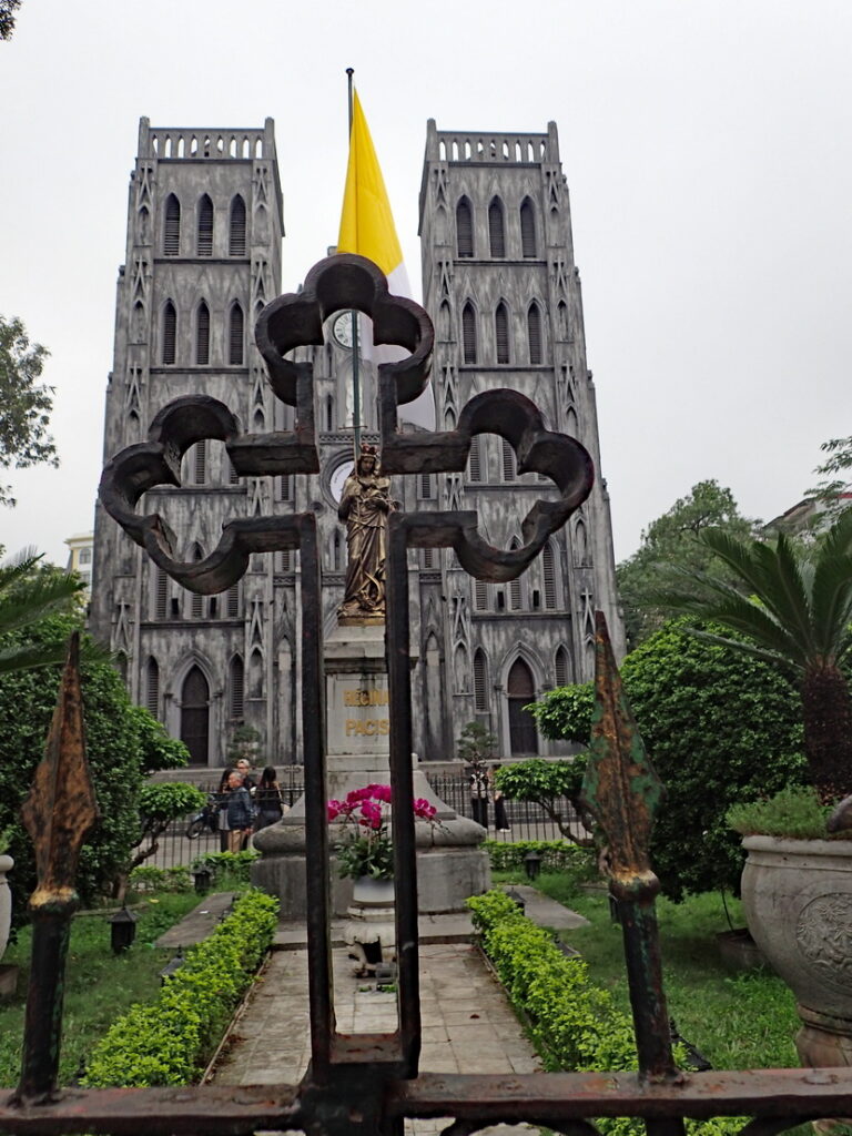 We willen ook nog langs de St. Josephkathedraal. Die ligt vlak bij het hotel. We zagen hem al bij de streetfoodtour op de eerste avond in Hanoi.