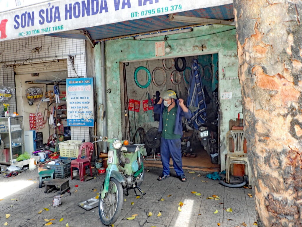 Na het ontbijt lopen we even langs de kapper. Voor 200.000 Dong zijn we beide geknipt en geschoren.