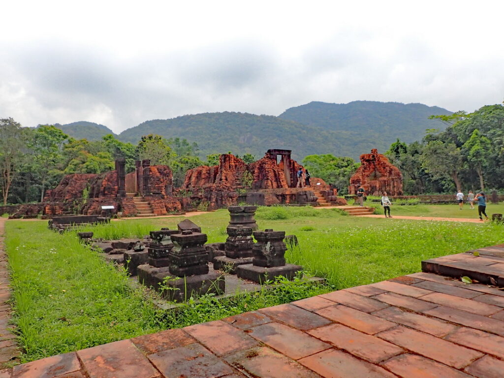 My Son is Unesco erfgoed uit de 11de eeuw. Wonderlijk hoe dit hier in deze uithoek tot stand gekomen is. Een groot deel is al uitgegraven en/of heropgebouwd. Grotendeels in terracotta stenen en tegels opgetrokken. In totaal 11 tempel ruines zijn blootgelegd. Anderen zijn ze nog aan het opgraven uit volledig begroeide heuvels en alvorens de reconstructie begint. Ze hebben hier nog jaren werk.
