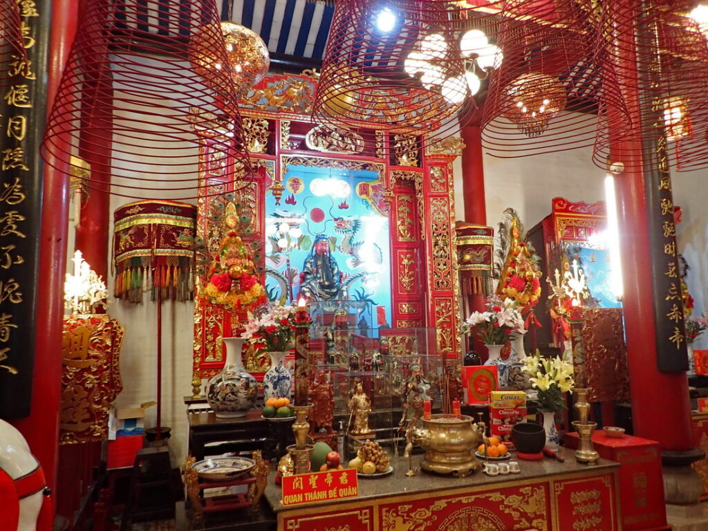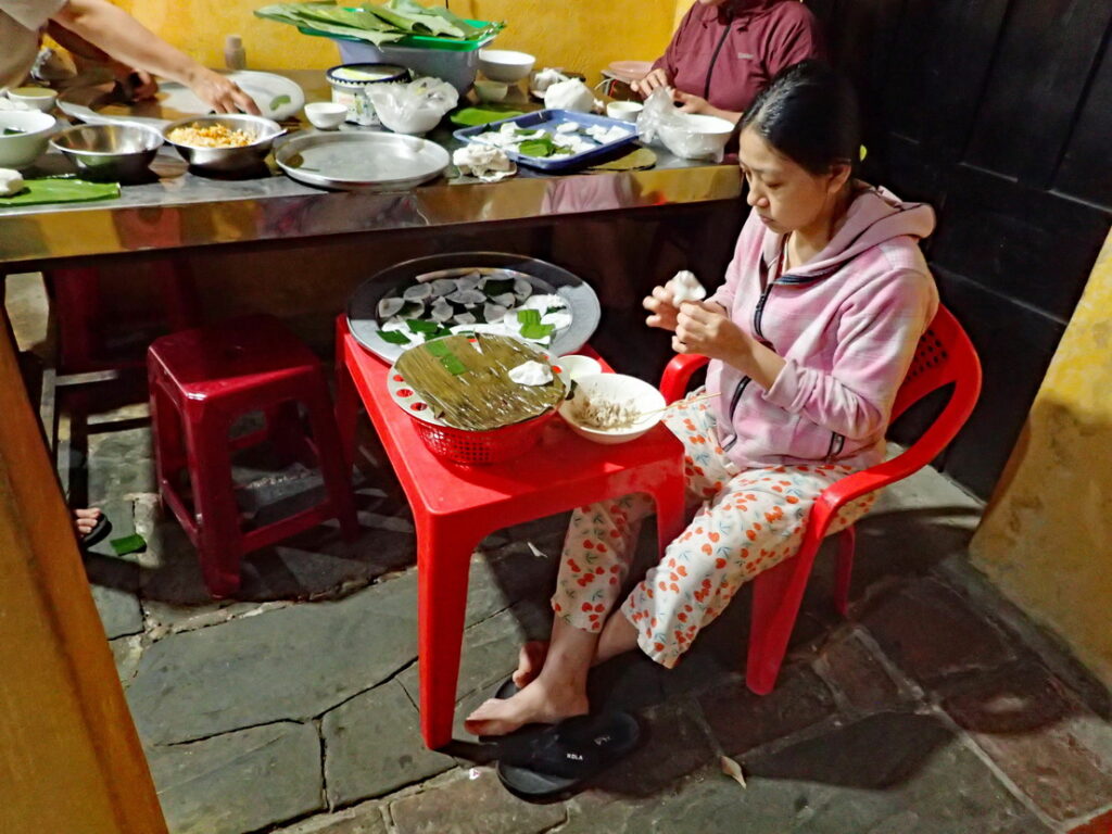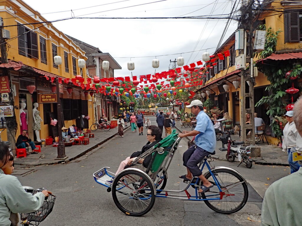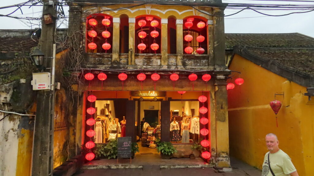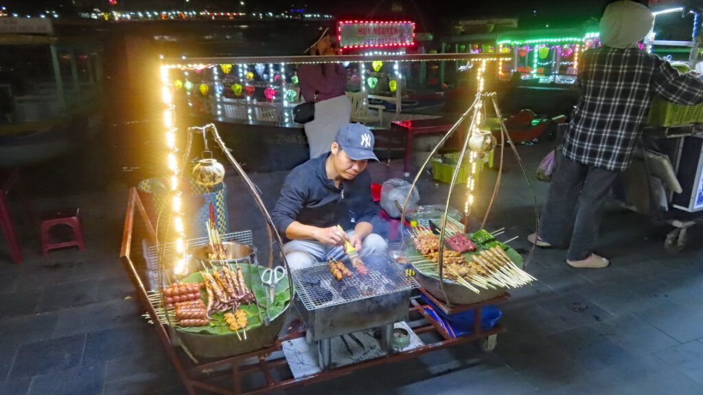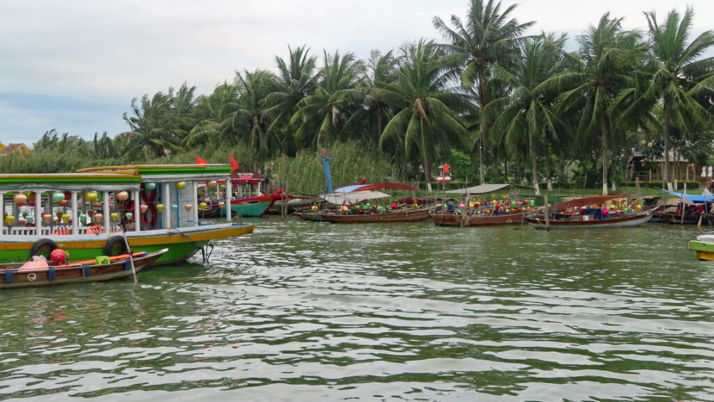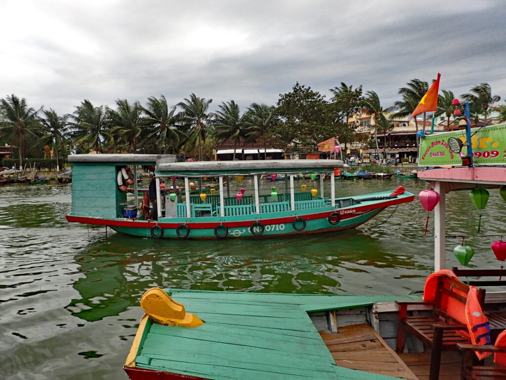 Rond half 2 werden we weer bij het hotel afgezet en hadden dus veel tijd over. Het was behoorlijk gaan waaien en dat werd een extra trui. De receptioniste vertelde ons over de lampionnen, dat wisten we al, maar dachten dat dat enkel op de 14de lunar van de maand was en dat was niet nu. Het is eigenlijk elke avond lampionnenfestival. Wij nemen de shuttle naar de stad en laten ons om 21 uur weer ophalen. We duiken de stad weer in en bezoeken nog wat andere huisjes, pakken een paar terrasjes en eten wat op de avondmarkt. Het wordt al lekker donker en het magische spektakel is begonnen… overal verlichte lampionnen, bootjes versierd met kleurige lampjes en mandjes met kaarsjes. Het trekt ontzettend veel volk zodat je bijna over de hoofden kan lopen.
