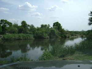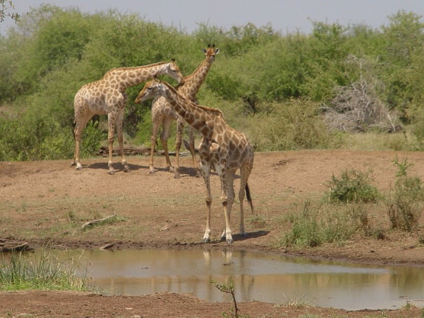 Deze keer beginnen we bij de Orpen gate. We rijden via Satara Camp richting de grens met Mozambique. Als we langs een water komen zien we een hut van waaruit je over het water de dieren van dichtbij kunt bekijken. Ma vindt het te warm en wil in de auto blijven maar na 5 minuten is ze overtuigd om toch mee te komen. Tja 54 graden zonder airco wordt heel heet. In de hut is het goed toeven en de Nijlpaarden, Krokodillen en Wevervogels zorgen voor het nodige vermaak.