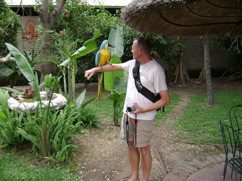Eerst bezoeken we het Swadini Reptile Park waar we kennis maken met allerlei soorten reptielen en een paar soorten vogels. Frederick amuseert zich ook nog kostelijk met een papagaai.